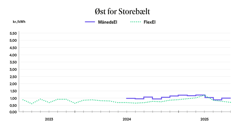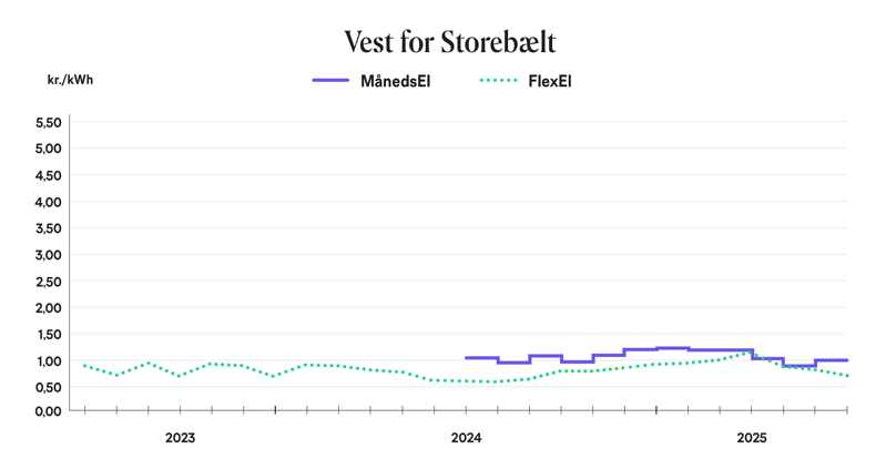 Denne post dækker prisen for dit kWh-forbrug samt abonnementet til din elleverandør. Eftersom prisen pr. kWh for tiden er højere end normalt, er procentdelen for denne post steget i forhold til tidligere.