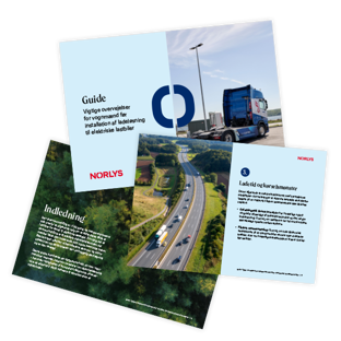 Overvejer du at skifte til ellastbil? Og har du behov for depotladning? Med en skræddersyet ladeløsning fra Norlys er du i gode hænder. Vi hjælper dig med at identificere dit ladebehov og dit ladevindue, hjælper med amperebalanceringen og med at finde den optimale placering af din nye ladestander. Med andre ord er vi med hele vejen – lige fra planlægning og rådgivning til installation, service og support.