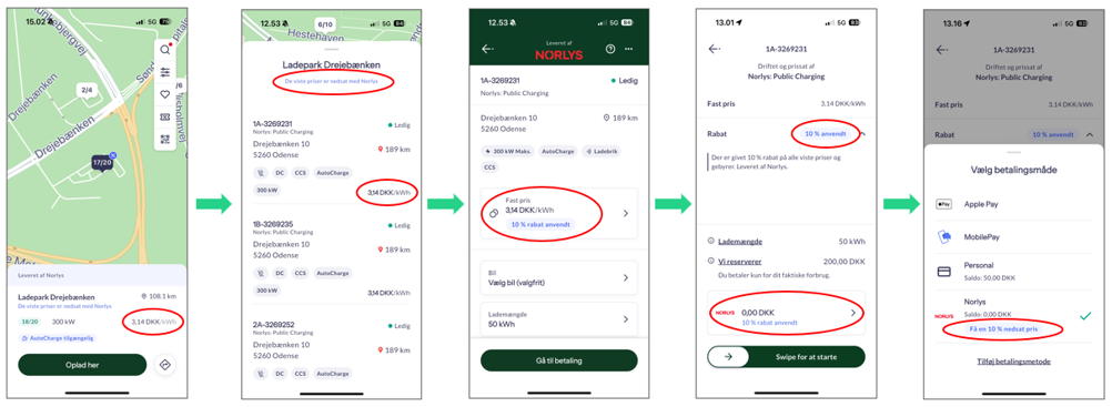 Du kan nemt finde de aktuelle priser for opladning i Norlys Opladningsapp – bare klik på den ladestander, du vil bruge, så ser du prisen med det samme.