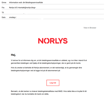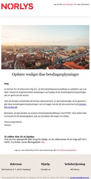 Norlys vil aldrig bede dig om at dele personlige oplysninger, adgangskoder eller betalingsoplysninger via mail eller sms. - Pas på links